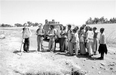除了水電項(xiàng)目,學(xué)校測(cè)繪工程學(xué)院師生也以技術(shù)服務(wù)“測(cè)量”非洲。2009年12月,學(xué)校與中國(guó)水利水電顧問(wèn)集團(tuán)北京勘測(cè)設(shè)計(jì)研究院簽訂全面合作框架協(xié)議,承擔(dān)了兩期援建埃塞俄比亞風(fēng)電場(chǎng)110平方公里的測(cè)繪項(xiàng)目,學(xué)校選派骨干師生16人組成測(cè)量隊(duì),先后于2010年、2012年兩次遠(yuǎn)赴非洲,開(kāi)展技術(shù)測(cè)量服務(wù)。盡管測(cè)區(qū)內(nèi)海拔高、天氣炎熱,到處是深溝險(xiǎn)壑,荊棘密布,叢林密集區(qū)域經(jīng)常有狼出沒(méi),但是隊(duì)員們卻不畏艱難、精益求精,按照“實(shí)習(xí)·生產(chǎn)”一體化的要求,高標(biāo)準(zhǔn)完成了60個(gè)E級(jí)GNSS控制點(diǎn)的選點(diǎn)埋石、外業(yè)觀測(cè)和數(shù)據(jù)處理工作,精度達(dá)到百萬(wàn)分之一,為企業(yè)解決了復(fù)雜地圖投影變換和繪制英尺數(shù)字地形圖的難題,充分展示了學(xué)校師生的精湛專業(yè)技能和良好職業(yè)素養(yǎng)。