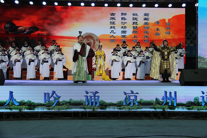 9月9日,來自全市三縣一區(qū)、市直機關(guān)、市老干局、市工商聯(lián)、市直教育系統(tǒng)選拔出的23個吟誦涼州詞節(jié)目齊聚武威市體育館,上演了“車馬相交錯,歌吹日縱橫”的涼州遺韻。學院推送的節(jié)目《金戈鐵馬入夢涼州》在決賽中成績位列第四,榮獲一等獎,并被市文廣局選送參加第二屆涼州文化論壇暨中國?河西走廊第八屆有機葡萄美酒節(jié)文藝展演。