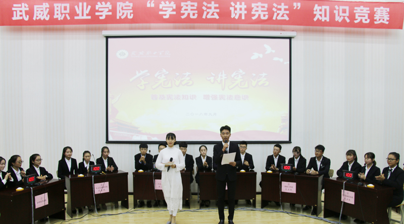 9月12日晚,院學(xué)生會(huì)在正德廳舉辦“學(xué)憲法、講憲法”知識(shí)競賽,組織人事處副處長魏全民、宣傳統(tǒng)戰(zhàn)部副部長史子新、院團(tuán)委副書記高鵬堂及200多名學(xué)生代表觀看了比賽。