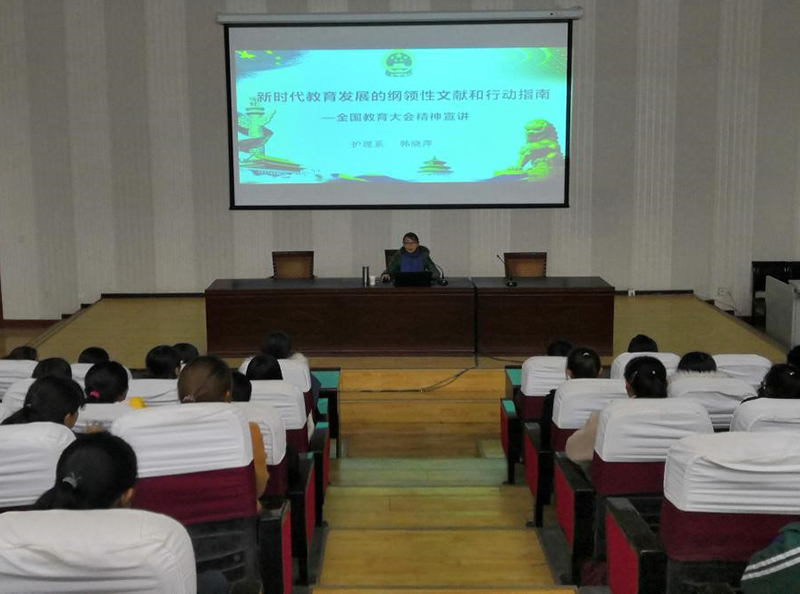為深入做好全國教育大會精神宣講工作,根據(jù)學(xué)院安排12月24日護理系主任韓曉萍在正德廳為護理系200余人進行全國教育大會精神宣講。