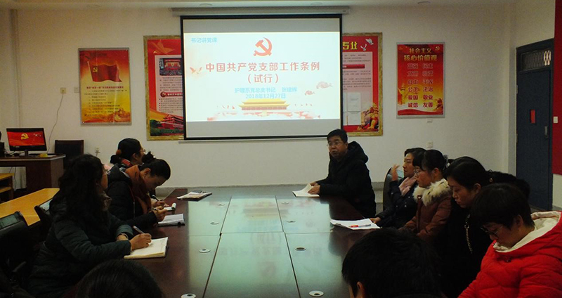 為進(jìn)一步加強(qiáng)黨支部標(biāo)準(zhǔn)化建設(shè), 12月27日,護(hù)理系黨總支在明遠(yuǎn)樓103黨員活動(dòng)室開展學(xué)習(xí)活動(dòng),護(hù)理系黨總支書記張建輝以《中國共產(chǎn)黨支部工作條例(試行)》為題,為參會(huì)黨員們進(jìn)行專題黨課輔導(dǎo),促進(jìn)全體黨員對黨建工作的認(rèn)識學(xué)習(xí)。