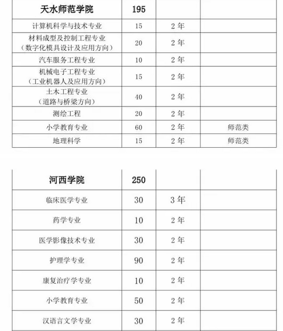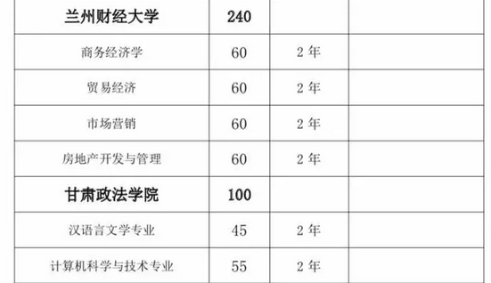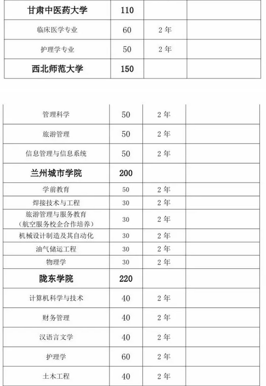 甘肅省2019年普通高校“專升本”招生計(jì)劃匯總表