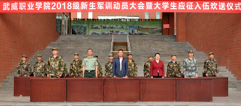 9月5日上午,武威職業(yè)學院2018級新生軍訓動員大會暨大學生應征入伍歡送儀式在大學生活動中心廣場舉行。學院副院長王永緒、田迎春,涼州區(qū)武裝部副部長韓小偉,工程防化第76旅副營長夏科銀出席儀式。承訓單位工程防化第76旅45名戰(zhàn)士,學院學工處處長,各系黨總支書記、輔導員、班主任,2018級全體學生參加了大會。儀式由田迎春主持。
