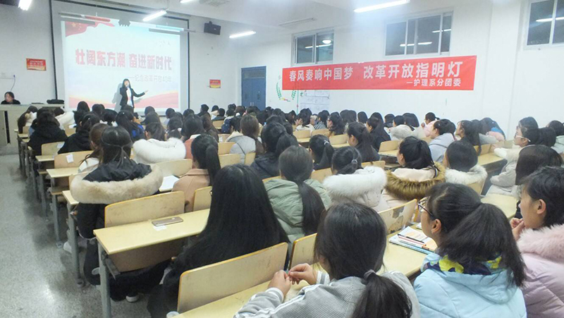 5月份在全院舉辦了“我與改革開放共成長(zhǎng)”為主題的征文活動(dòng),鼓勵(lì)青年學(xué)生寫身邊生活的變化,講改革開放的故事,談民族的偉大復(fù)興,感黨恩情,熱愛祖國(guó),筑夢(mèng)未來,共收集各系推選作品90份,評(píng)選出了33份優(yōu)秀作品并在學(xué)院團(tuán)青平臺(tái)進(jìn)行了選登。12月初全院各團(tuán)支部緊緊圍繞“我與改革開放共成長(zhǎng)”這一主題,開展形式多樣、線上線下主題團(tuán)日活動(dòng),增強(qiáng)了同學(xué)的愛國(guó)熱情,激發(fā)同學(xué)的民族自尊心和自豪感。12月18日組織青年學(xué)生代表觀看慶祝改革開放40周年大會(huì)的直播。