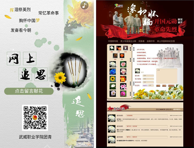 院團委在“武威職業(yè)學院團青”微信公眾平臺開設清明網(wǎng)上祭英烈專欄,共有3968名同學參與了線上活動。同學們帶著誠摯的敬意向烈士們鞠躬、獻花,并在留言區(qū)發(fā)表祭掃寄語,以此緬懷先烈的豐功偉績,追憶烈士之德。