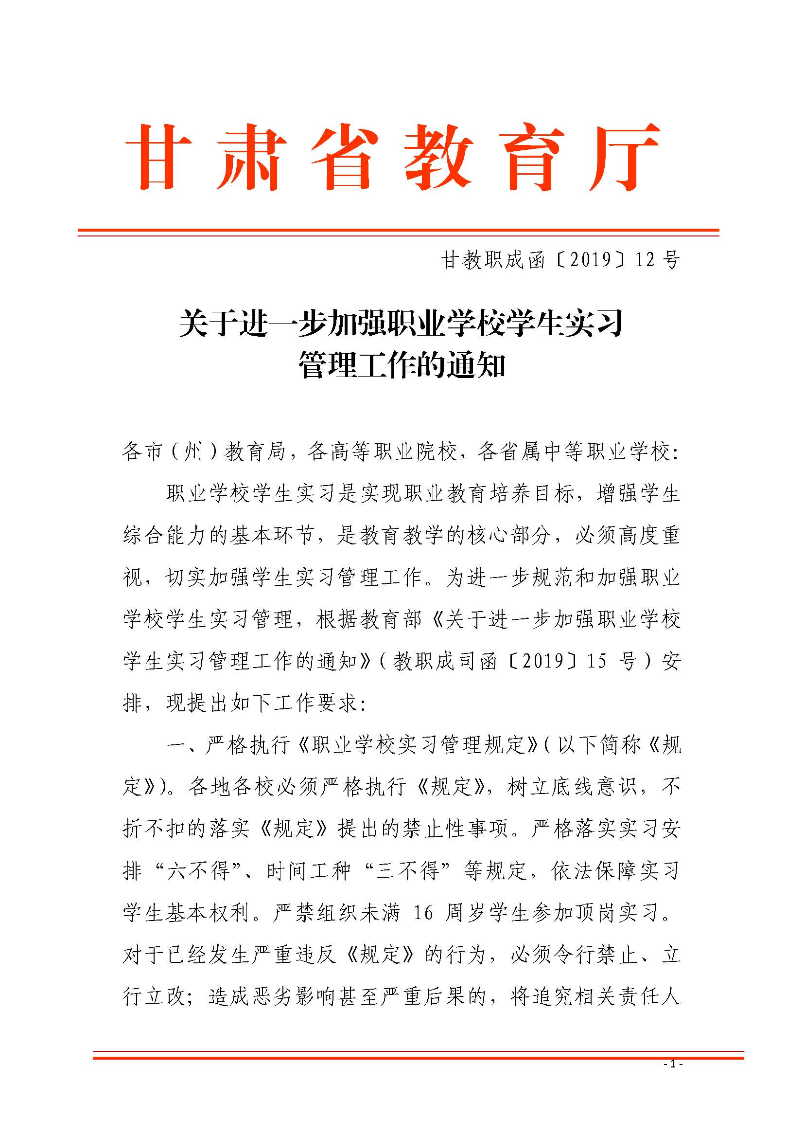 關(guān)于進(jìn)一步加強(qiáng)職業(yè)學(xué)校學(xué)生實習(xí)管理工作的通知