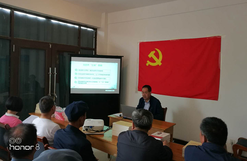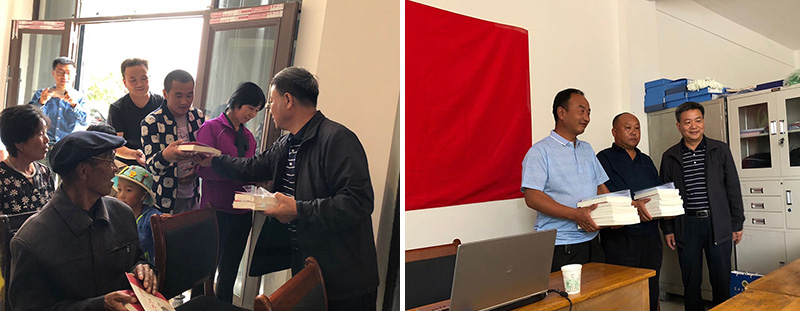 課后,學院領導把《習近平新時代中國特色社會主義思想學習綱要》《習近平新時代中國特色社會主義思想三十講》《全國優(yōu)秀共產黨員風采錄》《新時代黨支部規(guī)范化建設工作實用手冊》和“掃黑除惡”知識手冊等14類50多冊黨建書籍分別贈送給蘆草溝村、尚家臺村黨支部和駐村工作隊,還向聽課的村民黨員贈送《習近平的七年知青歲月》等書籍。進村入戶的幫扶干部向幫扶戶村民黨員贈送了黨建書籍。共贈送100多冊價值2700多元黨建書籍和掃黑除惡手冊。