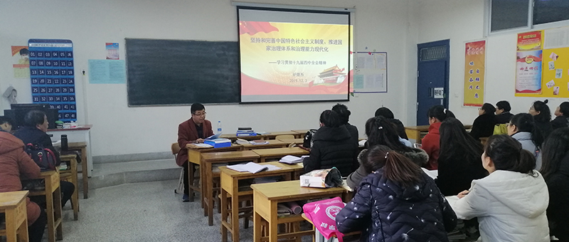 12月3日下午,護理系在明遠(yuǎn)樓214教室召開宣講黨的十九屆四中全會精神報告會,系黨總支書記張建輝同志以《堅持和完善中國特色社會主義制度、推進國家治理體系和治理能力現(xiàn)代化》為題進行宣講,全系教師聆聽了本次報告會。
