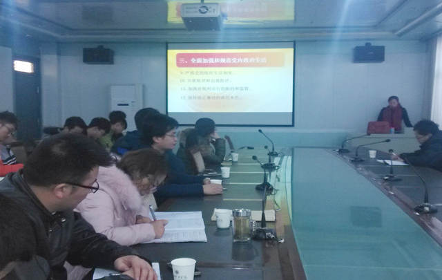 2016年12月27日,汽車(chē)工程系黨總支在博學(xué)樓二樓會(huì)議室召開(kāi)黨的十八屆六中全會(huì)精神宣講報(bào)告會(huì),邀請(qǐng)學(xué)院十八屆六中全會(huì)精神宣講組成員張麗娟副教授作題為《全面從嚴(yán)治黨開(kāi)啟新征程-十八大六中全會(huì)公報(bào)解讀》的宣講報(bào)告。報(bào)告會(huì)由系黨總支書(shū)記邸光才主持,系全體教師及入黨積極分子參加。