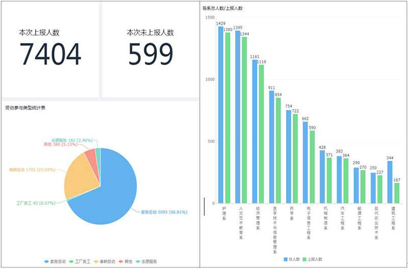 結(jié)合學(xué)生生活和學(xué)習(xí)實(shí)際,學(xué)院要求廣大學(xué)生積極參與志愿服務(wù)、春耕勞動(dòng)、工廠務(wù)工、家務(wù)勞動(dòng)等方面勞動(dòng)實(shí)踐,完成每周不少于2小時(shí)的實(shí)踐鍛煉,并通過信息化平臺(tái)上報(bào)活動(dòng)照片和勞動(dòng)心得。統(tǒng)計(jì)顯示,本次活動(dòng)上報(bào)7404人次,其中,家務(wù)勞動(dòng)5095人次,占68.81%,春耕勞動(dòng)1705人次,占23.03%,志愿服務(wù)182人次,占2.46%。