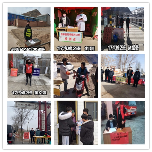 2018級(jí)汽修三班,辛明杰同學(xué)在當(dāng)?shù)卣膸ьI(lǐng)下配合小區(qū)黨組織開(kāi)展疫情防控工作,每天對(duì)小區(qū)出進(jìn)車(chē)輛進(jìn)行消毒,同時(shí)對(duì)人員的進(jìn)出進(jìn)行登記,在小區(qū)大門(mén)口進(jìn)行消毒。馮琦山同學(xué)參加當(dāng)?shù)卮逦M織的防疫駐守值班,對(duì)來(lái)往的車(chē)輛及行人進(jìn)行勸導(dǎo)。