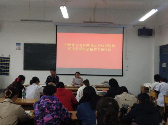 會(huì)上,護(hù)理系主任韓曉萍領(lǐng)學(xué)了《習(xí)近平總書記教育重要論述講義》,重溫了總書記教師節(jié)重要寄語(yǔ)及精神。她指出,全體教職員工要牢記習(xí)近平總書記“不忘立德樹人初心,牢記為黨育人、為國(guó)育才使命”的責(zé)任擔(dān)當(dāng),積極探索,在教書育人的崗位上不斷作出新的重大貢獻(xiàn)。她要求,每位教職員工撰寫一篇學(xué)習(xí)心得體會(huì),提高認(rèn)識(shí),牢記使命,立足實(shí)際,為黨和國(guó)家培育社會(huì)主義建設(shè)者和接班人。