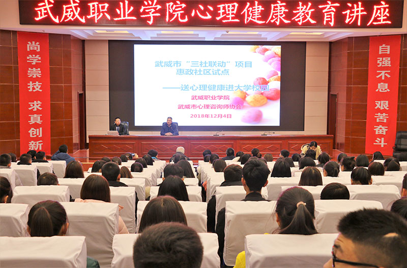 12月4日晚上,學(xué)生工作處聯(lián)合武威市“三社聯(lián)動(dòng)”惠政社區(qū)試點(diǎn)項(xiàng)目在學(xué)院菁英廳舉辦了心理健康專題講座暨心理信息員培訓(xùn)。此次講座邀請(qǐng)武威市心理咨詢師協(xié)會(huì)會(huì)長(zhǎng)何飛老師主講,學(xué)院各系輔導(dǎo)員、2017級(jí)、2018級(jí)班級(jí)心理信息員、心翼心理社團(tuán)會(huì)員等220多人聆聽(tīng)了講座。學(xué)生工作處處長(zhǎng)王守云主持活動(dòng)。