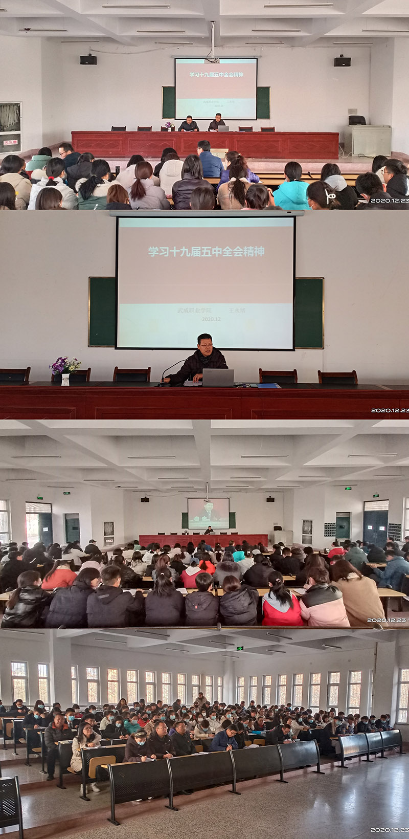 為深入學(xué)習(xí)貫徹落實(shí)黨的第十九屆五中全會(huì)精神,12月23日下午,學(xué)院黨委委員、副院長(zhǎng)王永緒同志在明德樓北側(cè)報(bào)告廳為電子信息工程系、護(hù)理系全體教師和學(xué)生入黨積極分子、團(tuán)學(xué)干部代表以黨的十九屆五中全會(huì)精神為主題講專題黨課。