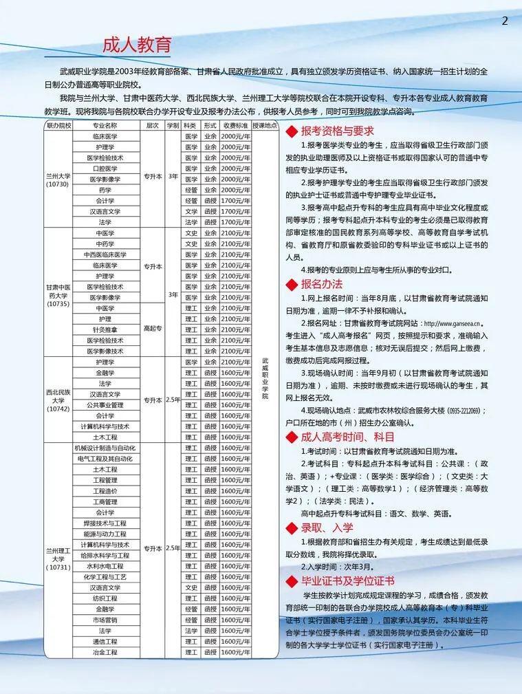 武威職業(yè)學(xué)院繼續(xù)教育學(xué)院2021年招生簡(jiǎn)章