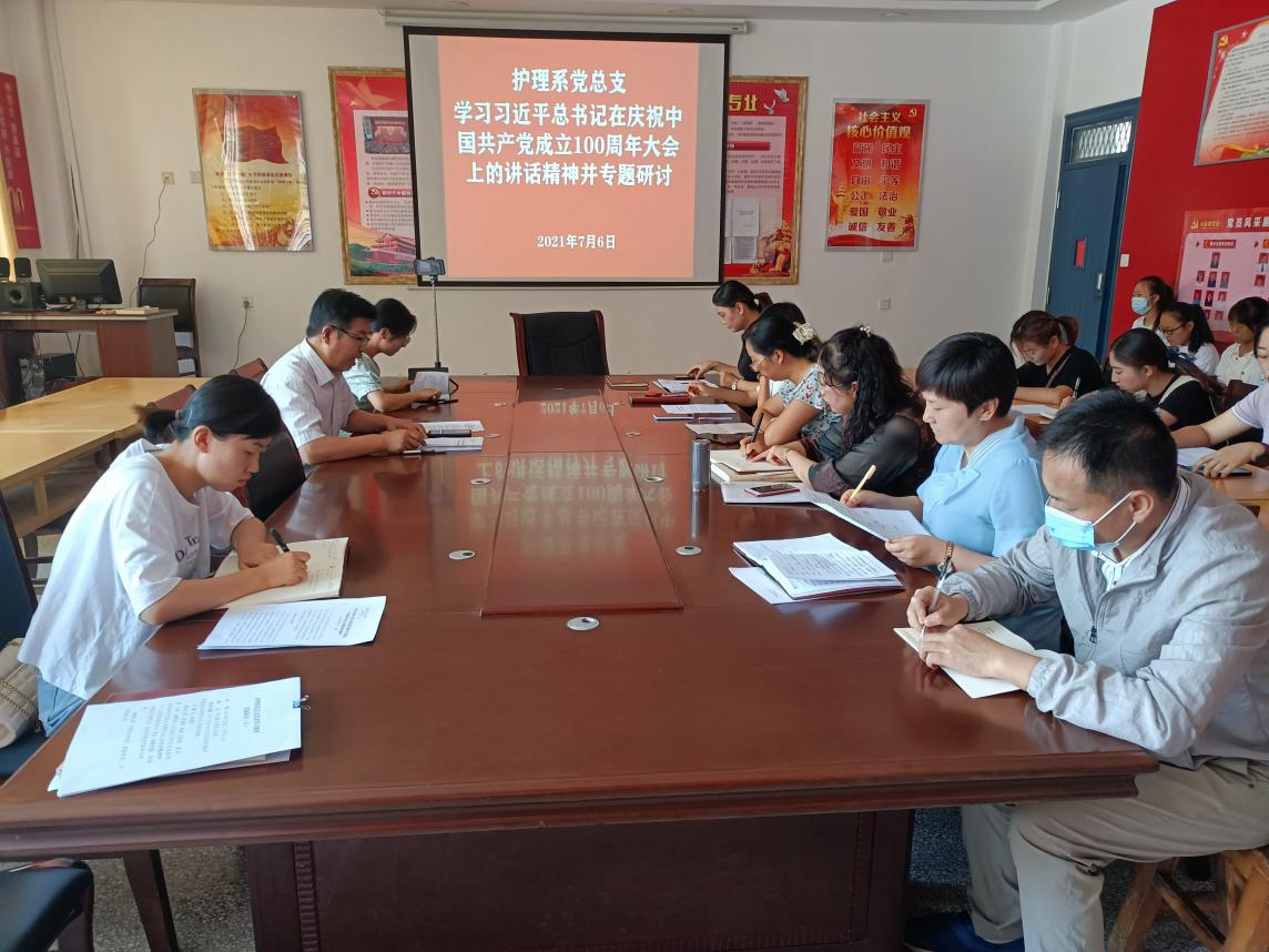 護(hù)理系黨總支專(zhuān)題學(xué)習(xí)領(lǐng)會(huì)習(xí)近平總書(shū)記在慶祝中國(guó)共產(chǎn)黨成立100周年大會(huì)上的重要講話精神并研討交流