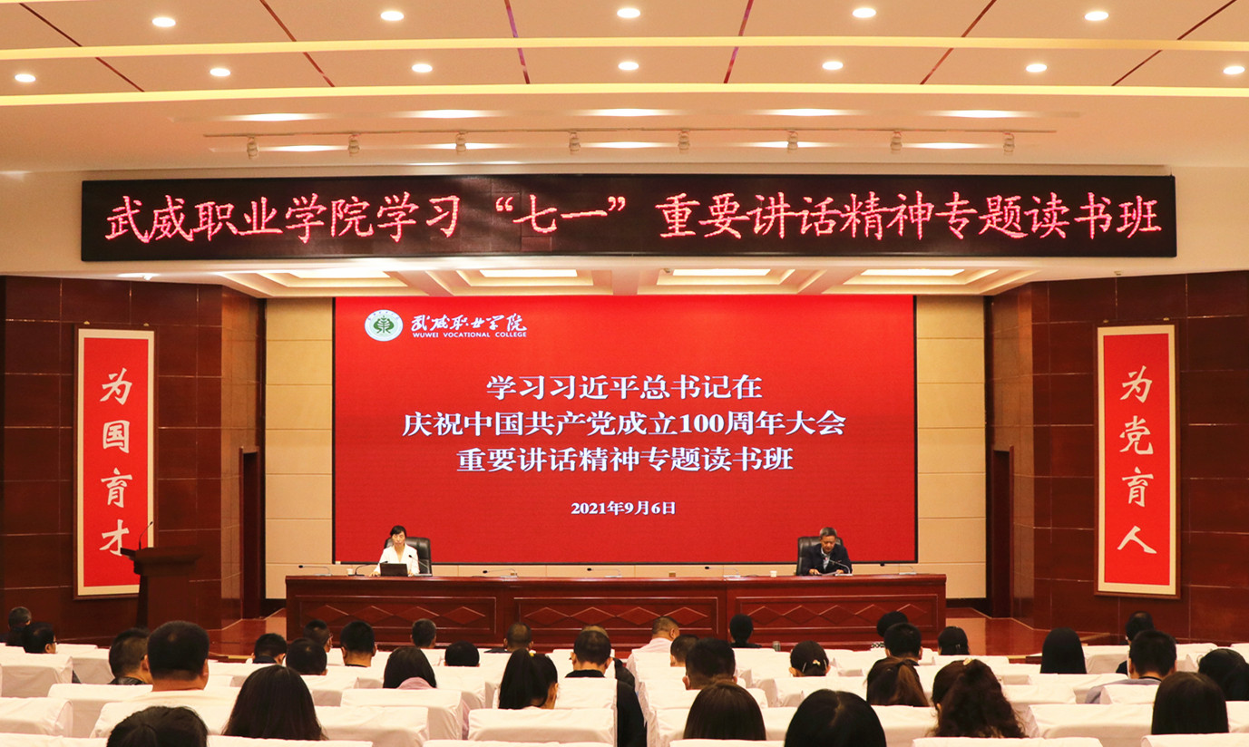 讀書班邀請市委黨史宣傳團(tuán)成員、甘肅畜牧工程職業(yè)技術(shù)學(xué)院副教授羅海燕同志作專題輔導(dǎo)報(bào)告。羅海燕同志從深刻把握習(xí)近平總書記“七一”重要講話的重大意義、深刻把握習(xí)近平總書記“七一”重要講話的豐富內(nèi)涵、學(xué)習(xí)貫徹落實(shí)“七一”講話精神三個(gè)方面,對習(xí)近平總書記在慶祝中國共產(chǎn)黨成立100周年大會上的重要講話進(jìn)行了解讀,報(bào)告主題鮮明、內(nèi)涵豐富,給參加讀書班的黨員干部和師生作了一場精彩的專題輔導(dǎo)。