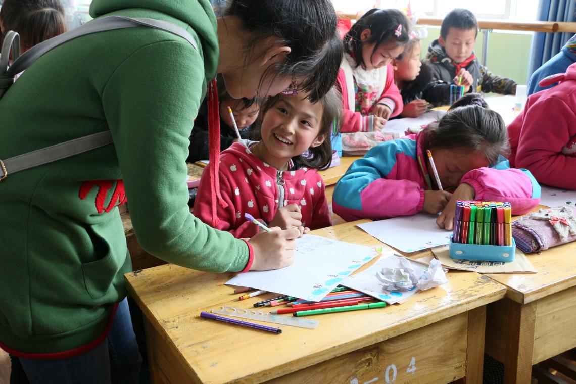 接下來的互動環(huán)節(jié),志愿者們將自己的美術(shù)作品和手工藝作品進(jìn)行了展覽,并協(xié)助小朋友們完成全家福的創(chuàng)作和手工藝品的制作。畫一幅全家福,讓他們感受到家的溫暖,疊一只小船載著“他們”的未來揚(yáng)帆遠(yuǎn)航,疊一顆“紅心”為他們送去最真摯的祝福,愿他們茁壯成長。最后由四壩中學(xué)張校長為表現(xiàn)突出的小朋友頒發(fā)了紀(jì)念品,這一環(huán)節(jié)不僅激發(fā)了小朋友們學(xué)習(xí)繪畫和手工藝品的興趣,而且提高了小朋友的動手能力,交流能力,同時提高了志愿者的服務(wù)能力。