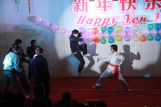 我系趙磊老師的薩克斯獨奏節(jié)奏明朗,富有磁力,優(yōu)美的旋律深深地吸引了全體觀眾。12級光熱班的張新輝,張一凡等同學反串《甄嬛傳》令現場的觀眾捧腹大笑。一首《祝福》的朗誦牽掛了所有觀眾,武術《中國功夫》令得全場驚呼,舞蹈《江南style》的精彩演出吸引了所有人的眼球。最后晚會在《同一首歌》的大合唱中緩緩落幕。