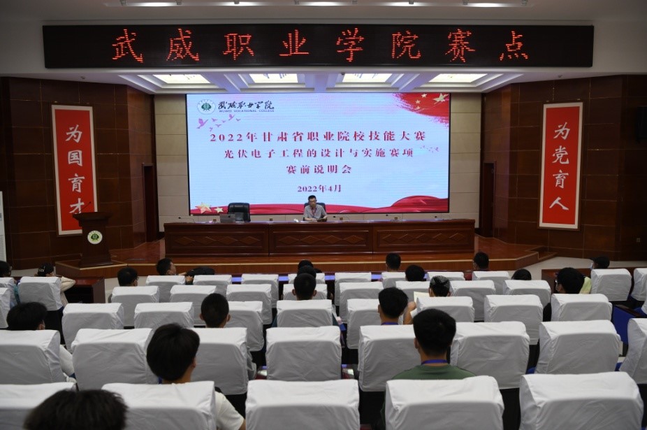 4月26日,2022年甘肅省職業(yè)院校技能大賽高職學生組“光伏電子工程的設計與實施賽項”成功在我校舉行。本次大賽由甘肅省教育廳、甘肅省人力資源和社會保障廳、甘肅省財政廳、甘肅省衛(wèi)生健康委員會、甘肅省總工會聯(lián)合主辦,武威職業(yè)學院是主要賽點之一,共承辦四個賽項。來自全省9所高職院校的15組共計45名選手參加了光伏電子工程的設計與實施賽項,互相切磋技能,展示工匠風采。