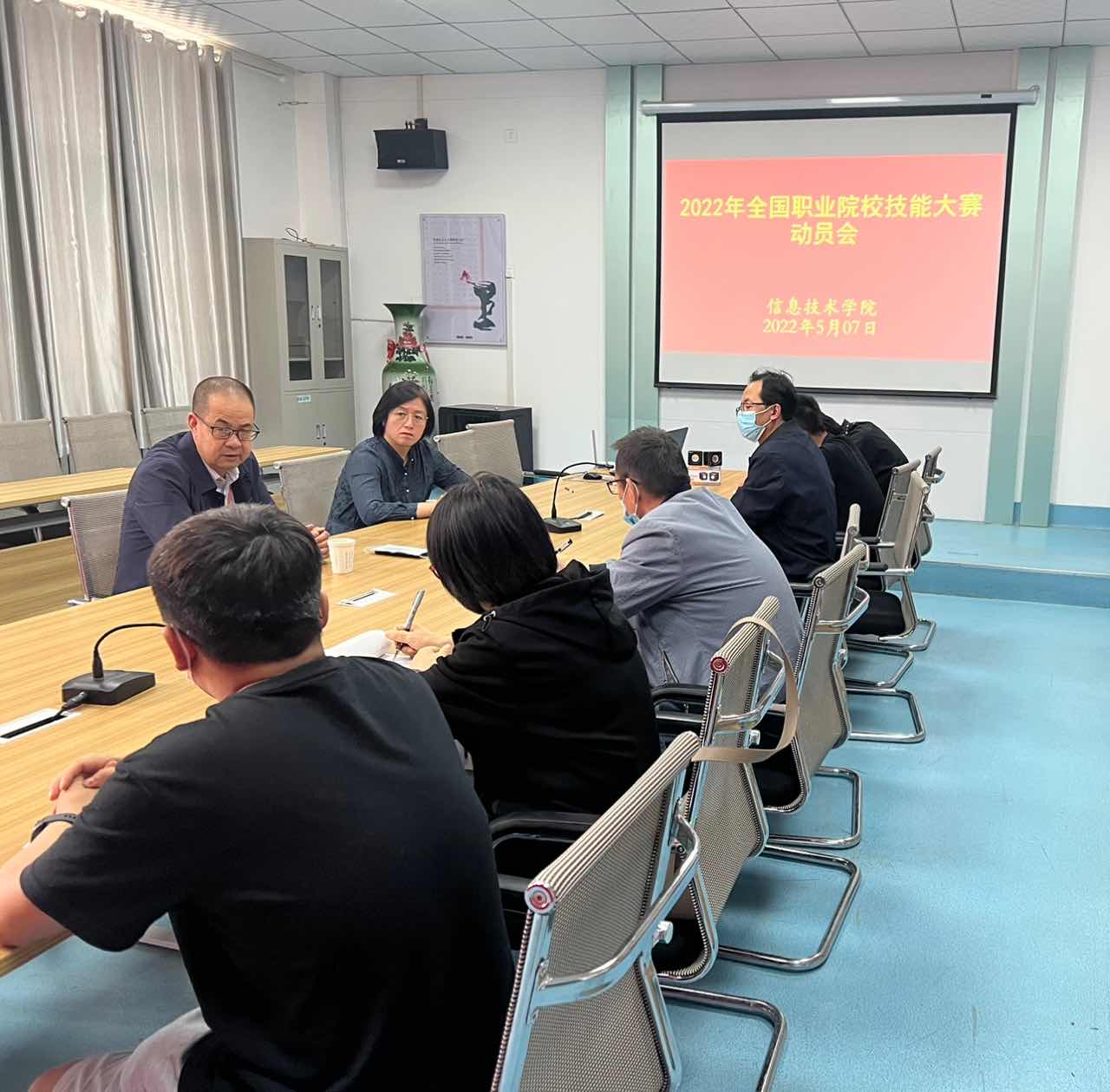 為貫徹落實“技能甘肅”“技能武威”工作任務,全力以赴推進學校高質量發(fā)展,加強學生技能水平,全力做好2022年全國職業(yè)院校技能大賽備賽工作,5月7日,2022年全國職業(yè)院校技能大賽動員會在信息技術學院明德樓409會議室召開。學校黨委副書記翟存祥、信息技術學院院長李亞梅、2個國賽參賽隊的全體指導老師和學生參加本次會議。