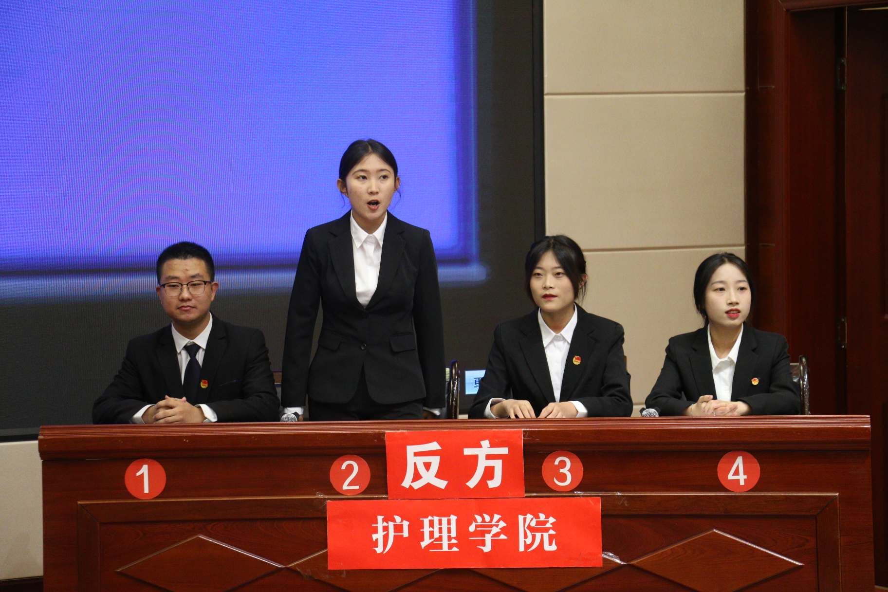 經(jīng)過11場(chǎng)次的比賽,藥學(xué)院代表隊(duì)和護(hù)理學(xué)院代表隊(duì)進(jìn)入最后決賽。決賽現(xiàn)場(chǎng),正反雙方針對(duì)誠(chéng)信主要靠“他律”還是主要靠“自律”拉開激烈交戰(zhàn)。雙方辯手圍繞辯題你來我往、侃侃而談、針鋒相對(duì),卻不失風(fēng)度;立論階段,旁征博引,攻辯階段雙方辯手“激烈廝殺”;自由辯論環(huán)節(jié),辯論雙方的金句妙言、據(jù)理力爭(zhēng)、滔滔不絕將比賽氣氛推向高潮,贏得在場(chǎng)聽眾的陣陣掌聲。