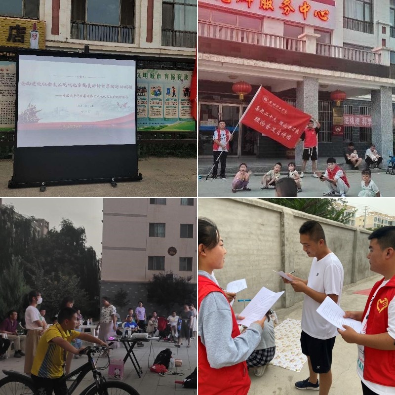 為深入學習習近平總書記在慶祝中國共產主義青年團成立100周年大會上的重要講話精神,貫徹落實黨的十九屆六中全會精神和省第十四次黨代會精神,引導和幫助廣大青年學生上好與現實相結合的“大思政課”,在社會課堂中“受教育、長才干、作貢獻”,堅定信念聽黨話、跟黨走,迎接黨的二十大勝利召開,由翟存祥名師工作室指導的“習近平新時代中國特色社會主義思想學習社”的大學生積極組建理論普及宣講團,開展理論普及宣講活動。