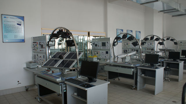 太陽能輻射觀測系統(tǒng)能夠測試總輻射、凈全輻射、直射、散射、反射五種輻射量。太陽能氣象觀測系統(tǒng)能夠測量屋頂當(dāng)前的風(fēng)速,風(fēng)向,溫度,雨量,濕度等。太陽能光伏發(fā)電系統(tǒng)應(yīng)用平臺由我院和湖北眾友科技有限公司共同開發(fā),該實訓(xùn)裝置可以演示在不同光照強度下太陽電池組件發(fā)電量的變化、模擬光伏發(fā)電系統(tǒng)的發(fā)電過程、演示離網(wǎng)型逆變器的工作原理及太陽能控制器的工作原理,為學(xué)生訓(xùn)練動手能力、增強理論基礎(chǔ)提供了良好的實訓(xùn)實訓(xùn)條件,采用模塊化掛箱設(shè)計,有逐日模塊、環(huán)境監(jiān)控模塊實驗、控制器模塊實驗、逆變器模塊實驗、顯示模塊實驗、負(fù)載模塊實驗、路燈模塊實驗 、應(yīng)用模塊實驗、新能源汽車模塊實驗組成,能開展近35項相關(guān)模塊實訓(xùn)。此設(shè)備目前在太陽能應(yīng)用領(lǐng)域國內(nèi)屬于領(lǐng)先地位。