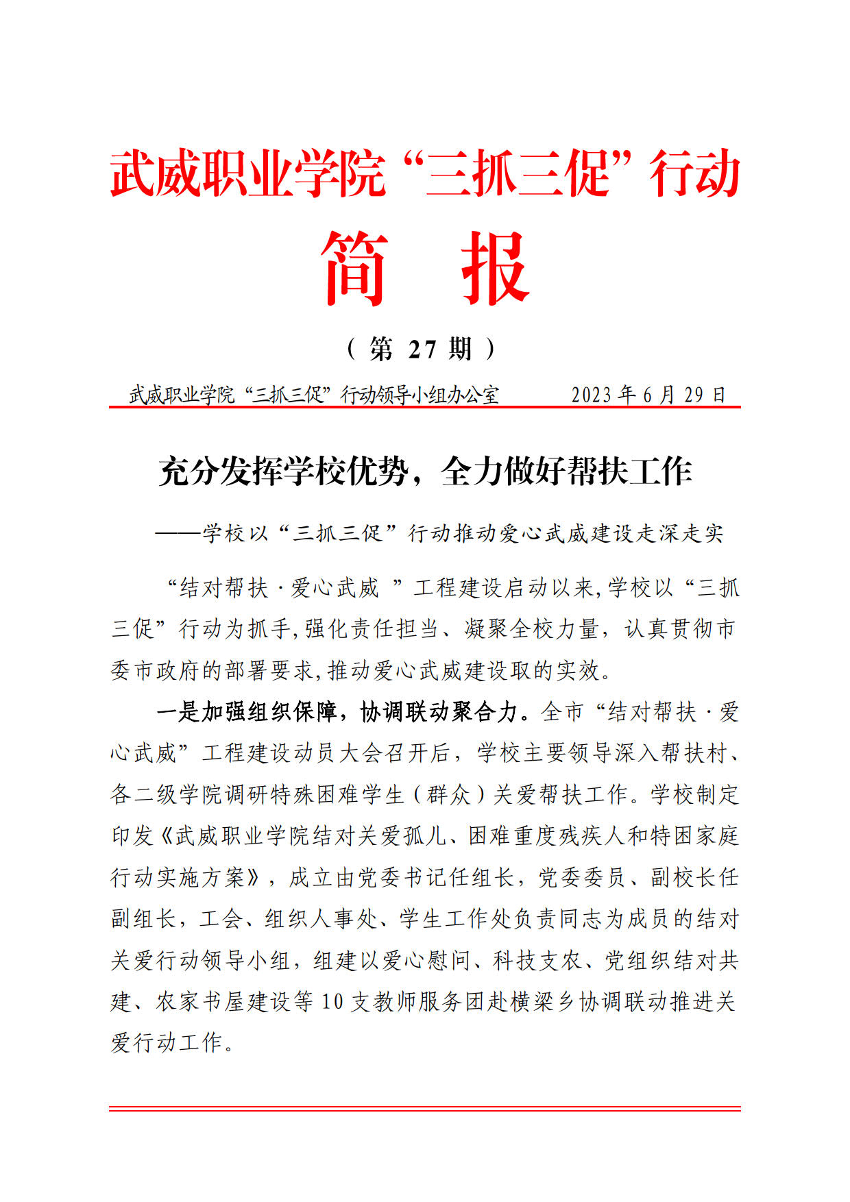 簡報第27期:充分發(fā)揮學校優(yōu)勢,全力做好幫扶工…