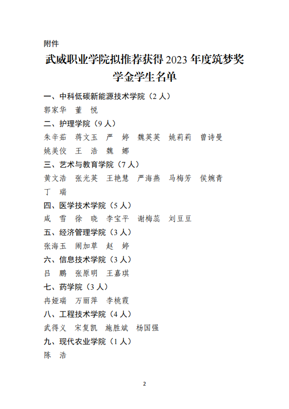 武威職業(yè)學(xué)院關(guān)于2023年度筑夢(mèng)獎(jiǎng)學(xué)金評(píng)選結(jié)果的公示