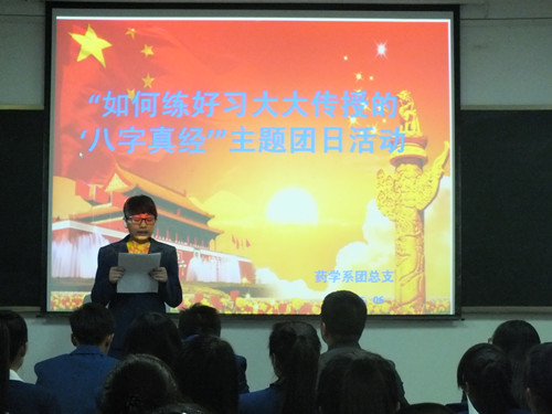 5月6日晚,藥學系組織團學干部和學生代表,在博學樓614室開展了學習習總書記傳授的“八字真經(jīng)”主題團日活動。