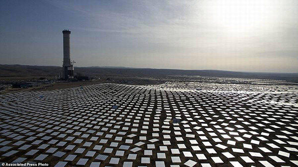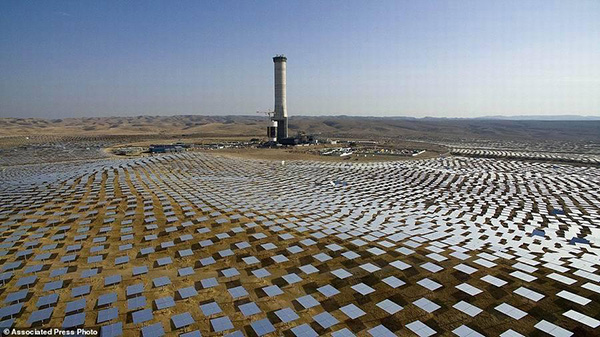 以色列內(nèi)蓋夫沙漠上5萬個日光反射鏡面環(huán)繞一座太陽能塔,該太陽能塔高度為250米。目前,在以色列晴朗天氣,太陽能利用率非常低,未來這項(xiàng)以色列最大的再生能源項(xiàng)目將具有較好的應(yīng)用前景,預(yù)計(jì)2018年建造完成。