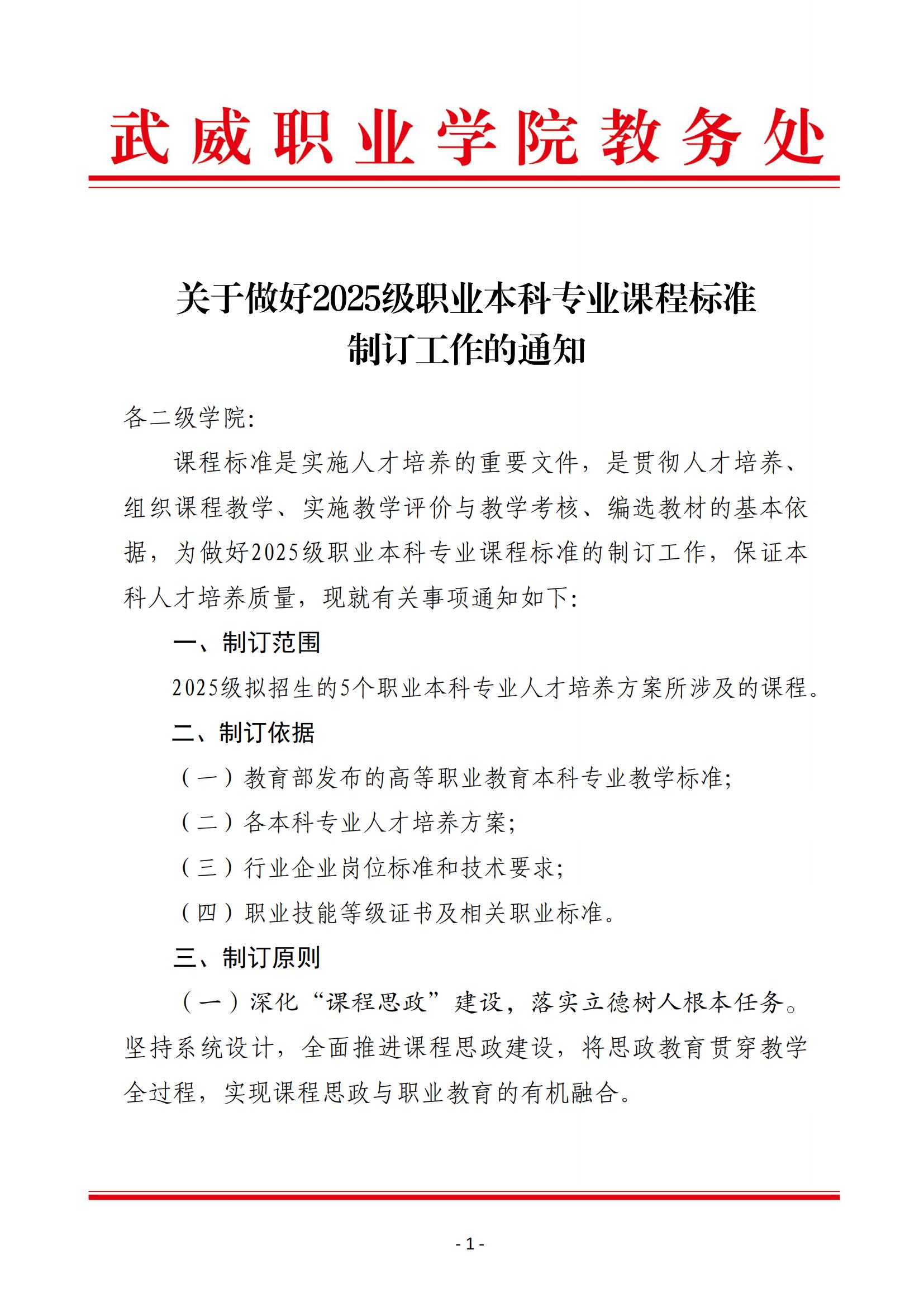 關(guān)于做好2025級職業(yè)本科專業(yè)課程標準制訂工作的通知