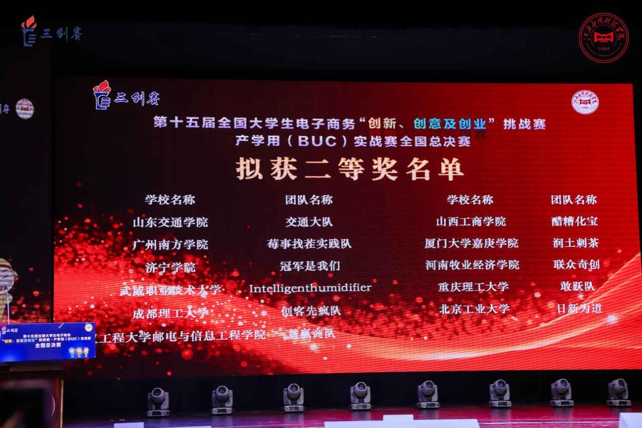 自2024年9月賽事啟動(dòng)以來,經(jīng)過校賽、省賽層層選拔,最終學(xué)校4支團(tuán)隊(duì)成功晉級(jí)全國總決賽,在直播電商、鄉(xiāng)村振興、產(chǎn)學(xué)用(BUC)三大實(shí)戰(zhàn)賽項(xiàng)中與全國優(yōu)秀參賽團(tuán)隊(duì)同臺(tái)競技,最終“涼韻臻品”團(tuán)隊(duì)獲得直播電商實(shí)戰(zhàn)賽全國一等獎(jiǎng);“甜瓜勁旅”團(tuán)隊(duì)獲得鄉(xiāng)村振興實(shí)戰(zhàn)賽全國二等獎(jiǎng);“沖鋒小隊(duì)”團(tuán)隊(duì)和“intelligenthumidifier”團(tuán)隊(duì)雙雙獲得產(chǎn)學(xué)用(BUC)實(shí)戰(zhàn)賽全國二等獎(jiǎng)。