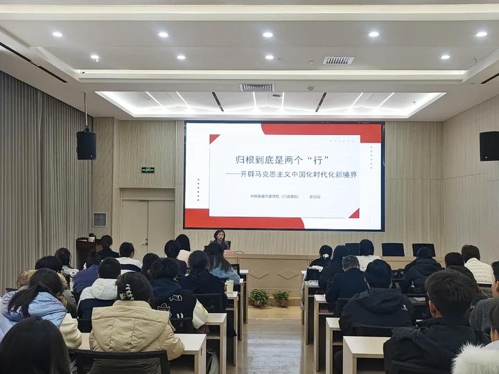 教學(xué)觀摩活動(dòng)以“歸根到底是兩個(gè)行——開辟馬克思主義中國化時(shí)代化新境界”為題,從“真理之光:馬克思主義行”“實(shí)踐之行:中國化時(shí)代化的馬克思主義行”“復(fù)興之路:不斷開辟馬克思主義中國化時(shí)代化新境界”三部分展開講述,她從“兩個(gè)行”這一重大論斷的理論溯源、時(shí)代背景與核心要義切入,結(jié)合新時(shí)代以來的偉大實(shí)踐與歷史性變革,深刻揭示了中國共產(chǎn)黨為什么能、中國特色社會(huì)主義為什么好的理論邏輯與實(shí)踐密碼,生動(dòng)回答中國之問、世界之問、人民之問、時(shí)代之問,實(shí)現(xiàn)了馬克思主義中國化時(shí)代化新的飛躍。她強(qiáng)調(diào),“兩個(gè)行”是相互貫通、有機(jī)統(tǒng)一的整體,開辟馬克思主義中國化時(shí)代化新境界,必須始終堅(jiān)持“兩個(gè)行”的根本遵循,在實(shí)踐中不斷推進(jìn)理論創(chuàng)新,并用發(fā)展著的理論指導(dǎo)新的實(shí)踐。