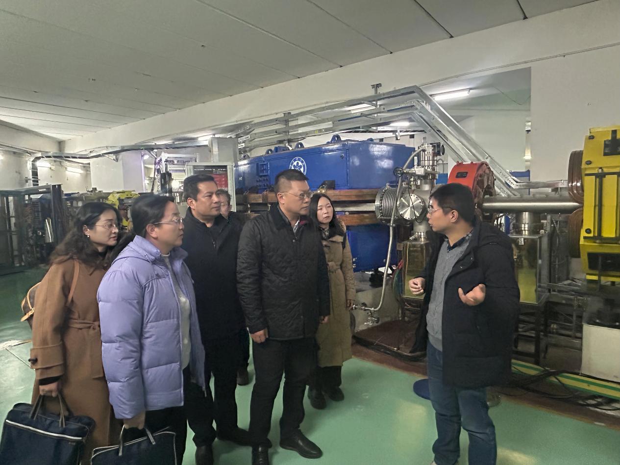 隨后,在醫(yī)用探測器室主任毛瑞士與副主任徐治國的陪同下,調(diào)研組實地參觀了“國之重器”——蘭州重離子加速器裝置,詳細了解了其結構組成、運行機制與核心技術原理。毛瑞士結合該裝置在重離子醫(yī)用探測器研發(fā)、醫(yī)用束測控制等領域的實際應用,闡釋了核探測技術對提升醫(yī)學診療精度的支撐作用,使調(diào)研組成員切身感受到大科學裝置的科技魅力與實用價值。