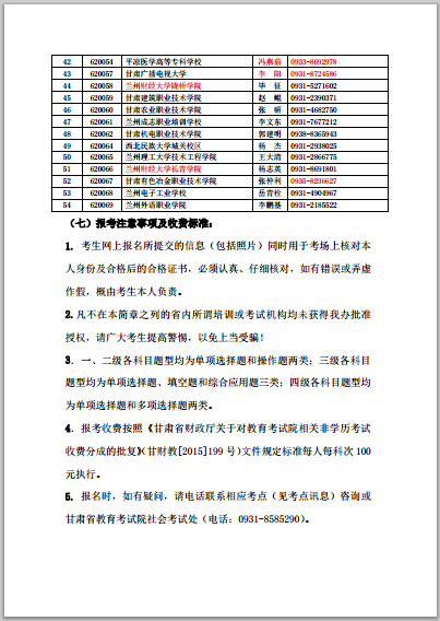 6.請(qǐng)各教學(xué)系將《甘肅省2016下半年全國計(jì)算機(jī)等級(jí)考試公告》等信息傳達(dá)到每個(gè)考生。