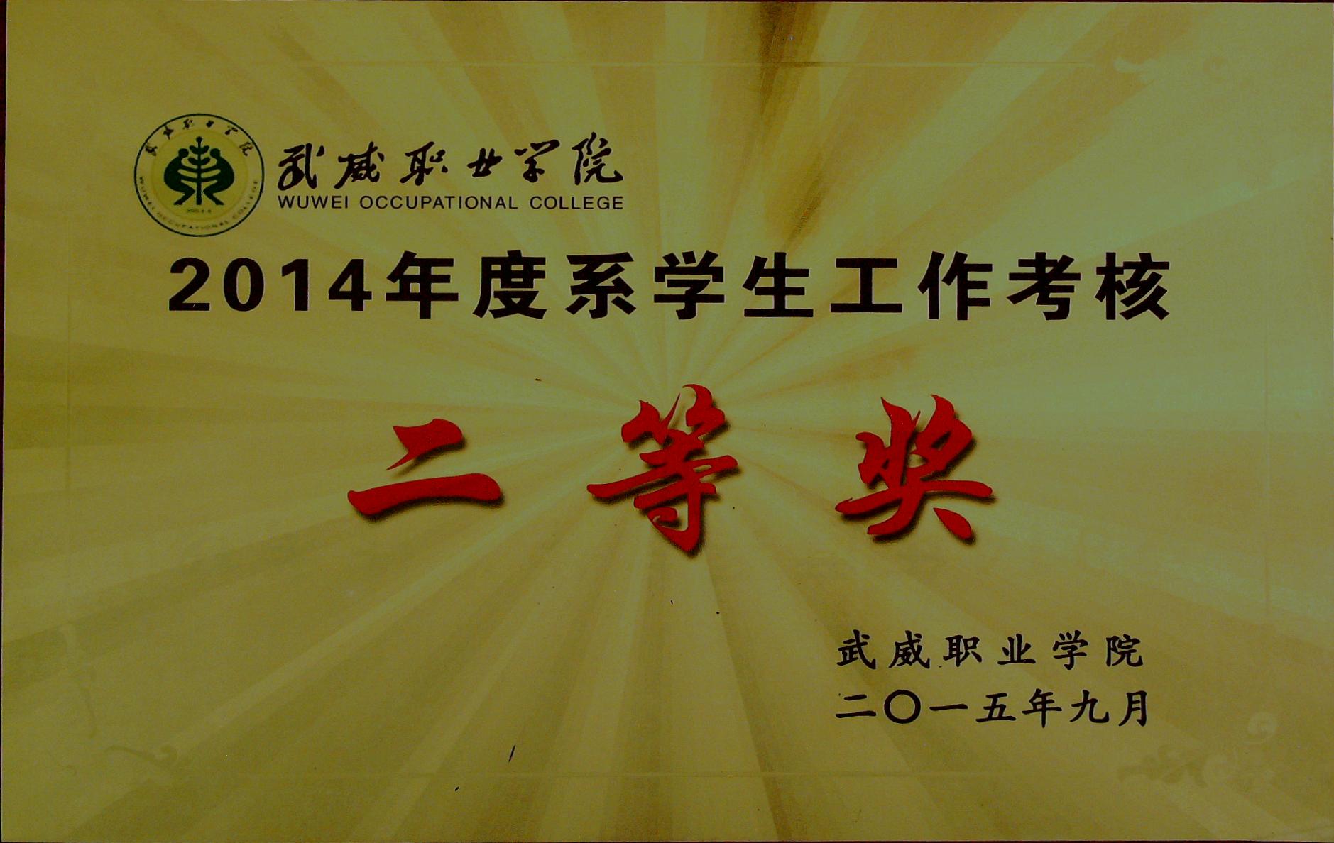 2014年度系學(xué)生工作考核二等獎