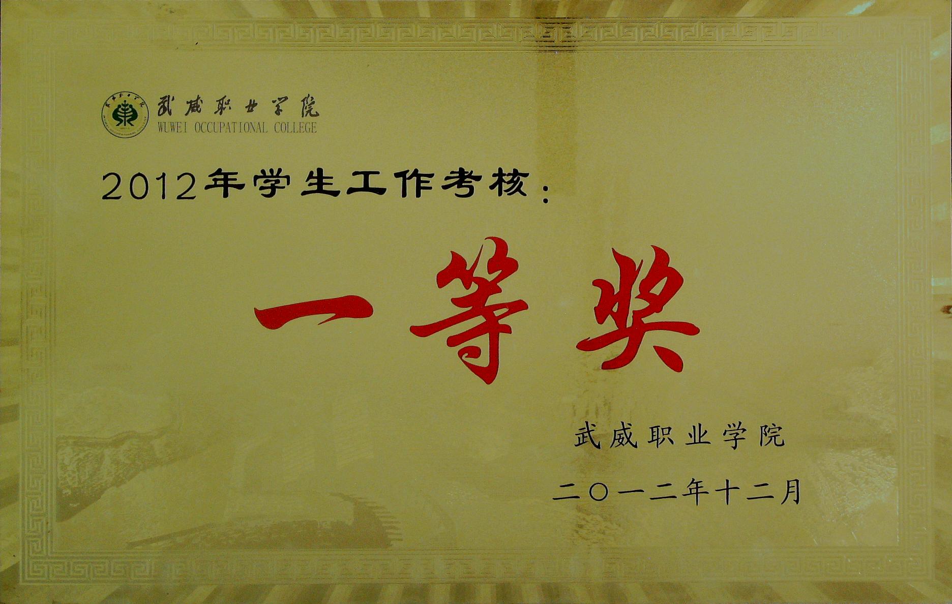 2012年學(xué)生工作考核一等獎(jiǎng)