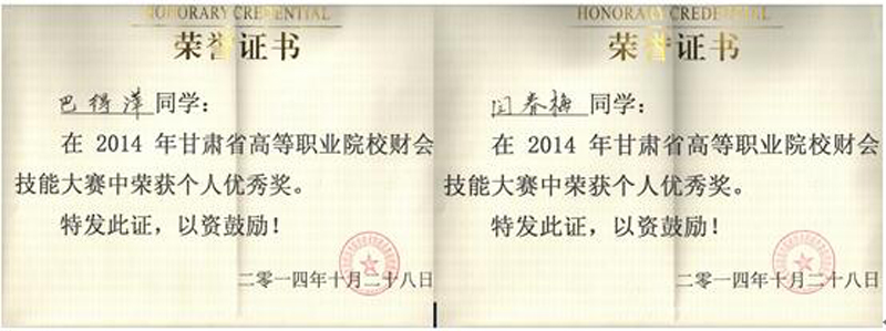 經(jīng)濟(jì)管理系12級(jí)會(huì)計(jì)電算化大專班四名學(xué)生在李惠蘭老師和賀德赟老師帶領(lǐng)下于2014年10月28日赴蘭州參加了2014年甘肅省高等職業(yè)院校財(cái)會(huì)技能大賽。
