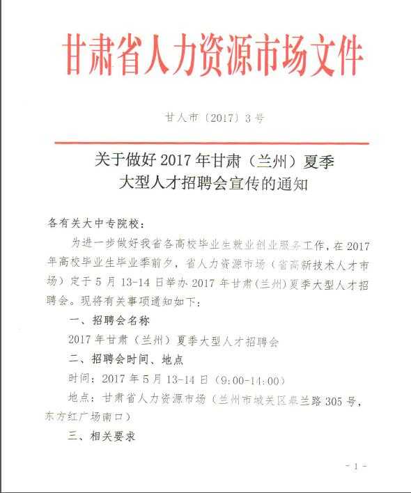 《關(guān)于做好2017年甘肅(蘭州)夏季人才招聘會(huì)宣傳的通知》