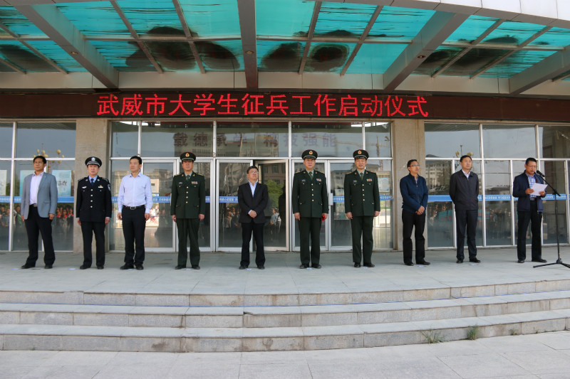 5月15日下午,武威市大學生征兵工作啟動儀式在學院尚德樓北廣場隆重舉行。武威市政府副市長胡細如和武威軍分區(qū)司令員萬發(fā)中出席啟動儀式并做了講話,武威軍分區(qū)政委周小平、參謀長孫武奇,市委宣傳部副部長陳萬能,涼州區(qū)委常委、常務副區(qū)長高加志,市教育局督學張應偉、市民政局雙擁辦副主任楊光鈺、市公安局副調(diào)研員陳振亞出席啟動儀式。武威日報社、廣播電視臺的媒體朋友和我院1000多名師生代表參加啟動儀式,學院副院長王永緒主持啟動儀式。