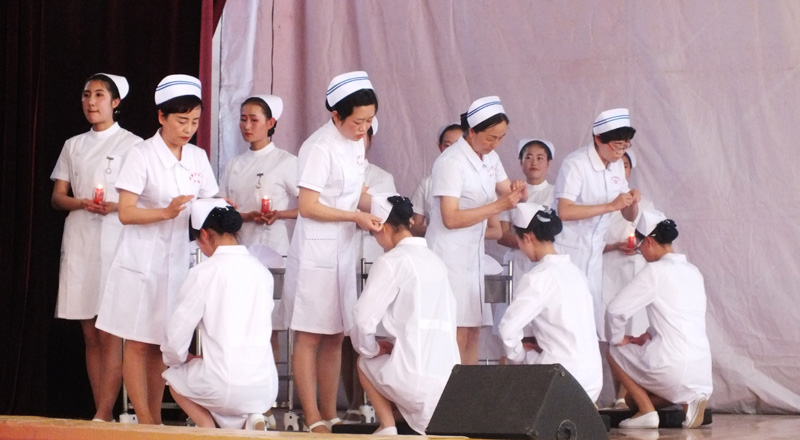 為繼承和弘揚南丁格爾精神,積極推動護理專業(yè)人才建設(shè)和職業(yè)內(nèi)涵塑造,展示我院護理專業(yè)師生風采,在第106個國際護士節(jié)來臨之際,學院于5月12日下午在大禮堂隆重舉辦了慶祝國際護士節(jié)活動,武威市衛(wèi)生計生委副主任潘玉華、學院黨委副書記趙明、紀委書記張富國、副院長王永緒、直屬附屬醫(yī)院護理部主任、相關(guān)處室領(lǐng)導(dǎo)及護理系全體師生1200余人參與了本次活動?;顒影ㄗo士授帽儀式,護理實踐技能操作表演,第四屆護理技能大賽頒獎,慶祝“5.12”護士節(jié)文藝演出等內(nèi)容。
