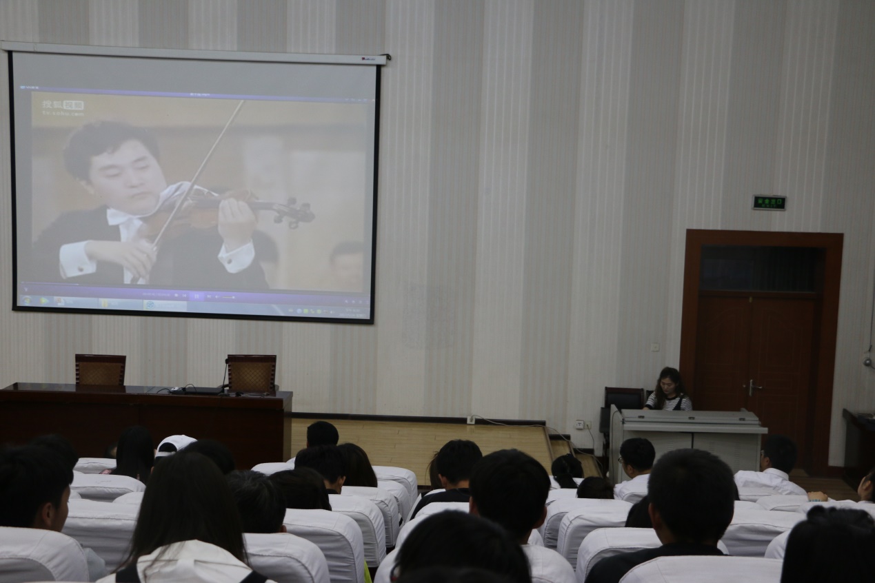 伴著優(yōu)美的音樂(lè)旋律王敏副教授開(kāi)始了講座,王老師首先介紹了音樂(lè)發(fā)展歷史和音樂(lè)鑒賞的基礎(chǔ)知識(shí),然后以我國(guó)著名作曲家陳鋼、何占豪先生創(chuàng)作的小提琴協(xié)奏曲《梁山伯與祝英臺(tái)》為題材,分階段講述了“鳥(niǎo)語(yǔ)花香”、“草橋結(jié)拜”、“英臺(tái)抗婚”、“投墳化蝶”等內(nèi)容和藝術(shù)場(chǎng)景。剖析了作品在管樂(lè)、和以小提琴、大提琴為主的弦樂(lè)及民樂(lè)有機(jī)結(jié)合的高超藝術(shù)境界,講座過(guò)程中王老師結(jié)合《梁?!穮f(xié)奏曲音視頻資料,演繹了梁山伯與祝英臺(tái)凄美的愛(ài)情故事。