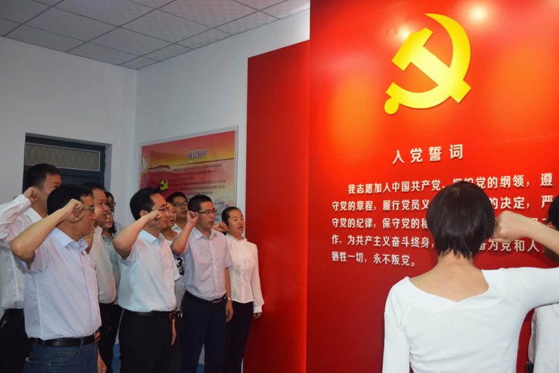 “我志愿加入中國(guó)共產(chǎn)黨,擁護(hù)黨的綱領(lǐng),遵守黨的章程……” 全體黨員同志在任陶的帶領(lǐng)下,鄭重地舉起右手,面對(duì)鮮紅的黨旗再次莊嚴(yán)宣誓。誓詞擲地有聲,鏗鏘有力,讓全院黨員同志得到了一次思想洗禮,一次精神激勵(lì)。任陶指出,重溫入黨誓詞,是“兩學(xué)一做”學(xué)習(xí)教育的重要內(nèi)容,是黨性的再熏陶、再教育,目的在于立起黨員的標(biāo)桿來(lái),喚起“入黨為什么”“在黨干什么”的重新思考。