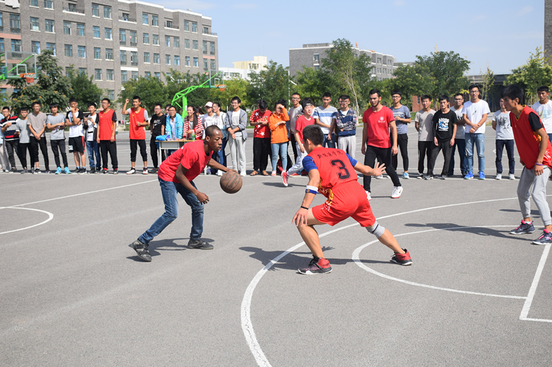 在籃球場上,留學(xué)生和學(xué)院學(xué)生展開了籃球友誼交流賽,他們本著“友誼第一,比賽第二”的精神開展籃球交流,經(jīng)過激烈的角逐,留學(xué)生代表隊(duì)以一分的優(yōu)勢獲勝。賽后,中外球員互相擁抱并合影留念。